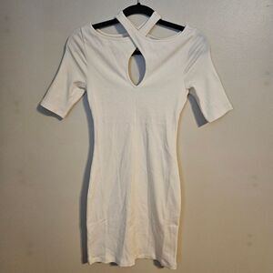 Skin Dress Indira Mini Bone White Neutral Casual Bridal Cocktail Keyhole