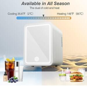 4 Liter Mini Fridge: This mini fridge for skin care can adjust the temperature to 35.6°F (2°C) - 149°F (65°C), extend the activity of skin care products, or store drinks and food. At the same time heating mode can heat wet towels to soothe the skin, insulation of breast milk
