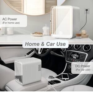 Skincare Mini Fridge Dimming LED Mirror (4 Liter6 Can) Cooler Warmer Makeup Food