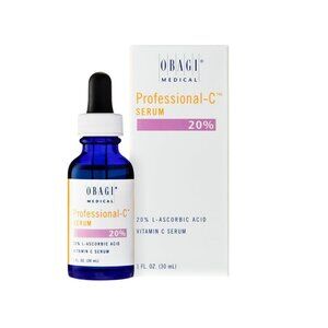 Obagi Professional C Serum 20% is a vitamin C facial serum designed for normal to oily skin. It contains a concentrated 20% L Ascorbic Acid, offered in a small 1fl oz bottle.