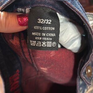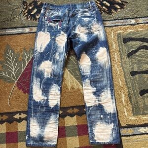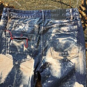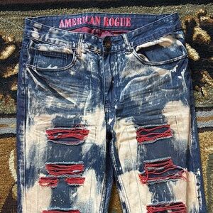 Skinny Blue and Red Jeans with Distressing and Embroidery