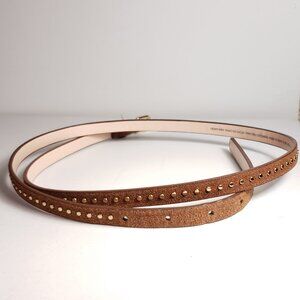 Skinny Brown And Gold Metallic faux suede leather studded belt Size M Like New