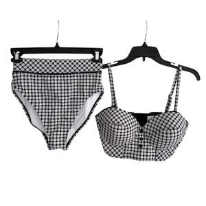Skinny Dippers Miracle Suit NEW Black White Plaid Corset Two Piece Swim Large