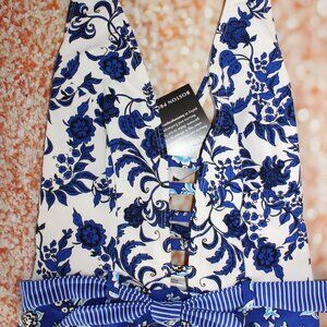 Skinny Dippers Size M One-Piece Blue Rosa Ladder Plunge Floral Swimsuit NWT