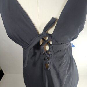 Skinny Dippers Women Black Tie Front Criss-Cross One-Piece Swimsuit Size L