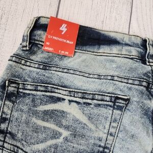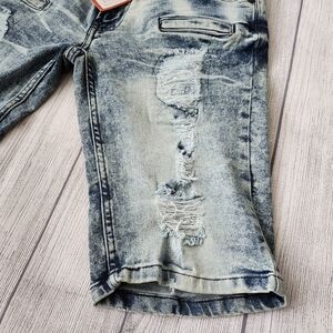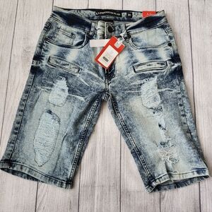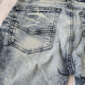 Skinny fit distressed denim shorts. Size 29 for young adult.