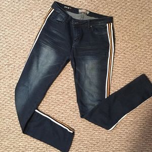 NWOT jeans. Size 11. Great yellow and white detail down the side. A little bit of spandex stretch.