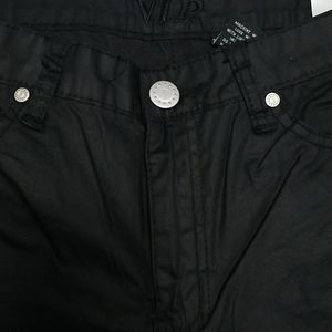 Black skinny Jean waxed coating, with five pockets 55% Ramie 26% Cotton 17% Terylene 2% Spandex