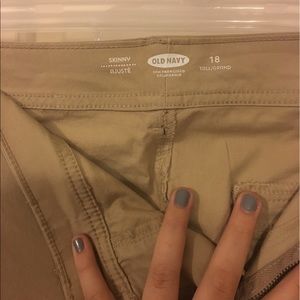 Size 18 tall skinny leg khakis with spandex from Old Navy. Never worn, I can't pull off skinny leg pants.