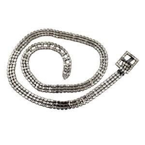 Skinny Rhinestone Belt 28 1/2" Clear Crystals Silver Tone Buckle Vintage 50s