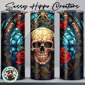 Skinny Tumbler Skull Roses Stain Glass Spooky Creepy Halloween 20oz Stainless-Steel Hand Sublimated by Sassy Hippo Creations