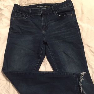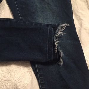 Skinny jeans with distressed hem at ankles. Smoke free by