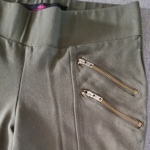 Skinny green pants with zippers