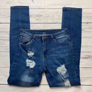 Woman’s skinny jeans . They have stretch to them . Distressed style . No brand bought at a boutique. Size medium. I would say fit like a size 6