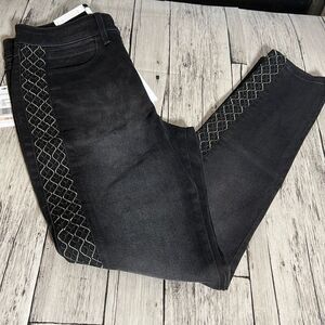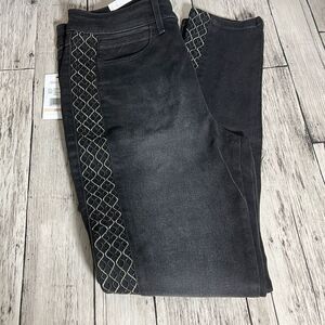 Skinnygirl Women's Larry High Rise Skinny Geometric Side Print Black Jeans Size 28/6