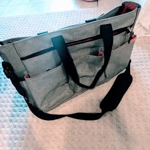 Skip Hop Duo Double Signature Diaper Bag in Heather Grey. Designed for a side by side double stroller, but worked great on our single stroller and our tandem double.
