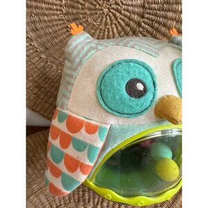 Adorable plush-and-plastic owl tumbler with colorful balls inside that rattle and spin as it moves. Designed to wobble and entertain, making it a fun and engaging toy for babies and toddlers.