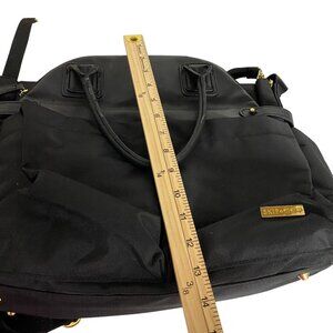 The Chelsea Bag has insulated side pockets to perfectly fit bottles, sippy cups and snacks, too. This design also features a front compartment that flips down for a second look. Soft adjustable shoulder strap Clip-on stroller straps Faux-leather details and zipper pulls Gold metal details Lightweight durable fabric 12 pockets, including four interior pockets Metal feet to keep off the ground BPA-free, Phthalate-free Size (inches): 171 x 6.5w x12h; (cm): 431 x 16.5w x 30.5h skip hop diaper bag satchel chelsea downtown chick. Condition is "Used"