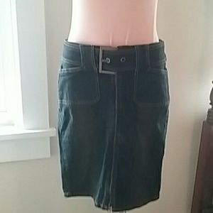 A denim jean skirt with a zipper up the front. Need something to wear to work the also going out afterwards and want something a little sexy just unzip the zipper and show a little leg. It's a size 3