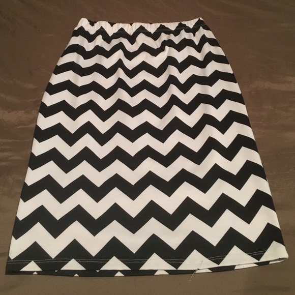 Black/White Chevron print Skirt. I am 5'5" and it hits right below my knee. 23" from Waist to Hem. Size L but def fits like a M.