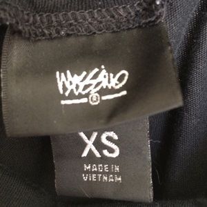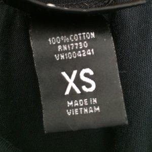 Black skirt with ruffle design near the bottom. Size is xs. Dimensions are length: 19 inches. Width at waist: 12.5 inches. The waist has an elastic band so will easily fit larger waist sizes.