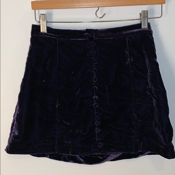 Dark purple velvet mini skirt with buttons up the front and zipper on the side