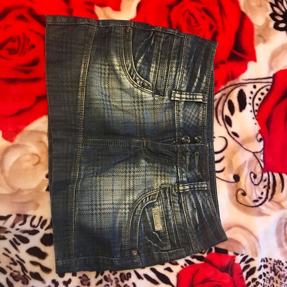 Its a jeans mini skirt size small. I bought this in Greece couple years ago and i only wore it once. I stopped wearing short stuff thats the only reason I’m selling it otherwise this was one of my favorite skirts. Its whitish blue jeans