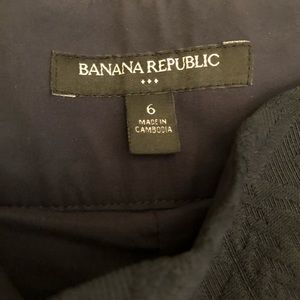 High waisted with an Aztec-type print. Has pockets! This is a really deep navy blue