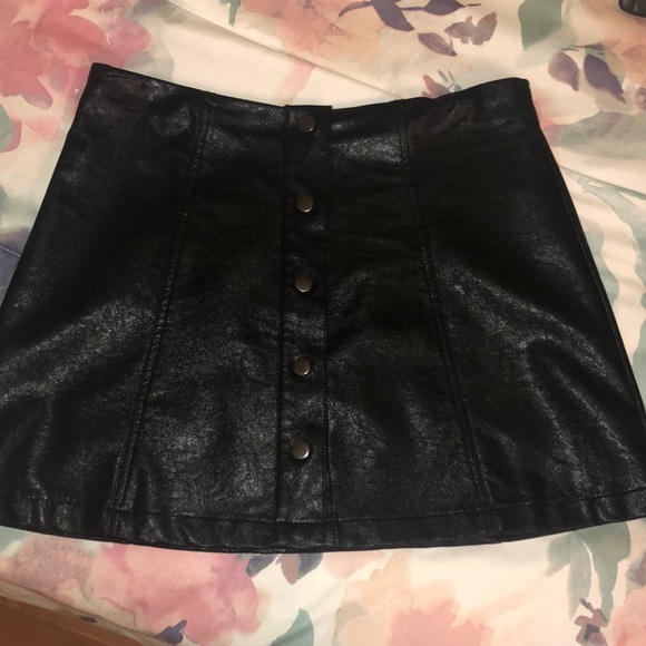 this is a black leather skirt that I got from forever 21, and unfortunately it is small on me