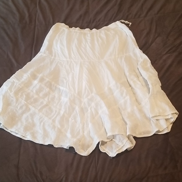 Airy skirt. I am 5' 2" and it is ankle length. It is labeled small but I think it fits more like a medium.
