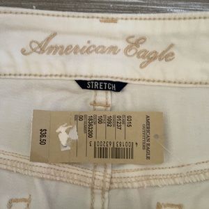 American Eagle white skirt with a beige lining. New with tags . Stretch material size 00 or XXS. I included the length and width of skirt in pictures.