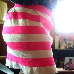 This is a pink and white striped skirt 4 plus size are medium size women I'm blessed as well 100% polyester made in China size 3x may run a little small