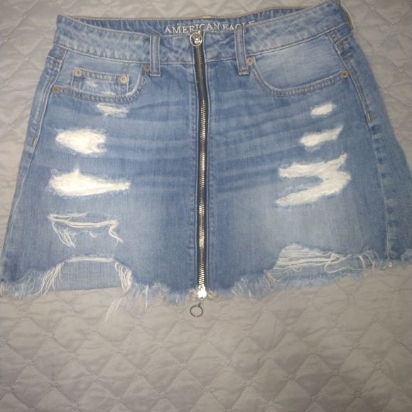 Cute denim skirt with working zipper in front, excellent condition!