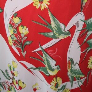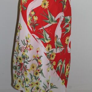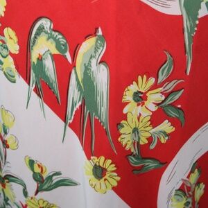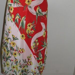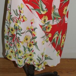 Beautiful bird print. Skirt is lined and has a hidden elastic waist which allows for some give in the waist line.