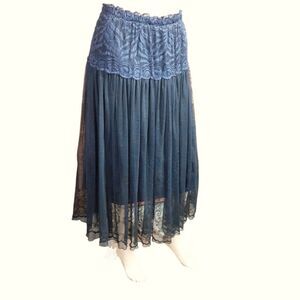 Skirt Bohemian Embroidered Gauze with Lace Tulle Panel size M/L