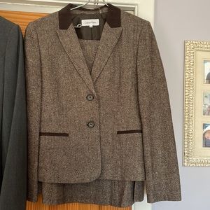Beautiful skirt suit with velour trim at the collar and pockets. Like new.