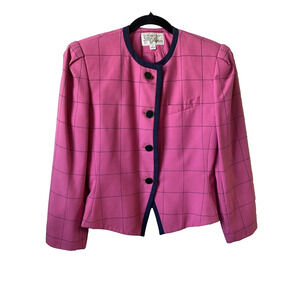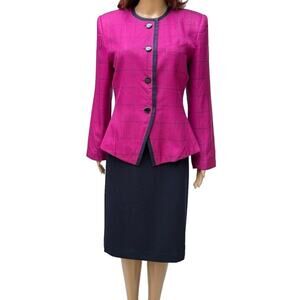 The Suit Collection Women's 2pc Skirt Suit Size 6. Both the blazer & skirt are size 6. Vintage Pink & Blue Career Office Work Attire. Old Money. All buttons attached. No rips or stains. Fabric shows normal signs of wear.