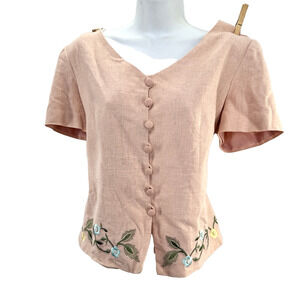 Skirt Suit 8 Vintage Linen Set Church 2 Piece Pink Floral Top Cottage Minimal