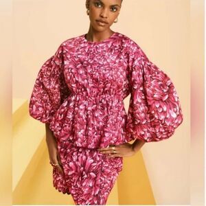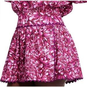 NWT- Kika Vargas coral reef scallop edge midi skirt. Made from a soft cotton-recycled cotton blend. Designed in a pink mum floral print. Mini length with a classic fit. Features scallop edge detailing, side zipper, and side pocket. Excellent for any occasion. Match with a white or pink tee. Turn yourself into a living work of art with the Mum Floral Scallop Edge Midi Skirt from Kika Vargas x Target. Made from a soft cotton-recycled cotton blend, this skirt is designed in a pink mum floral print in a mini length with a classic fit. Scallop edge details, a convenient side pocket, and a side zipper finish off the stylish look. Material: 80% Cotton, 20% Recycled Cotton Rise: Classic Closure Style: Side Zipper Fit: Classic Fit Garment Length: Mini /Garment Details: Side Pocket /Care and Cleaning: Machine Wash & Tumble Dry/ Mum floral scallop edge faux-wrap mini skirt / Side zipper/ Flat measurements: length 18”, waist 18”.