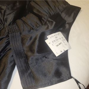 So stunning in a super silky fabrication, this special set features a cropped, ruffle-adorned cropped top and coordinating high-rise maxi skirt with high-low, ruffle-adorned bottom hem for added shape.