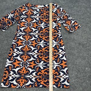 Skirtin Around Dress Womens Size S Blue Orange 1/2 Sleeves Sheath Pull Over