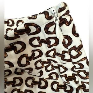 Add a touch of equestrian chic to your wardrobe with this Skirtin’ Around skirt in size 2. Featuring a timeless brown horsebit chain print, this piece offers preppy polish with a hint of playful charm. Designed in New Canaan, CT, this skirt embodies classic East Coast style with a flattering silhouette and comfortable fit.