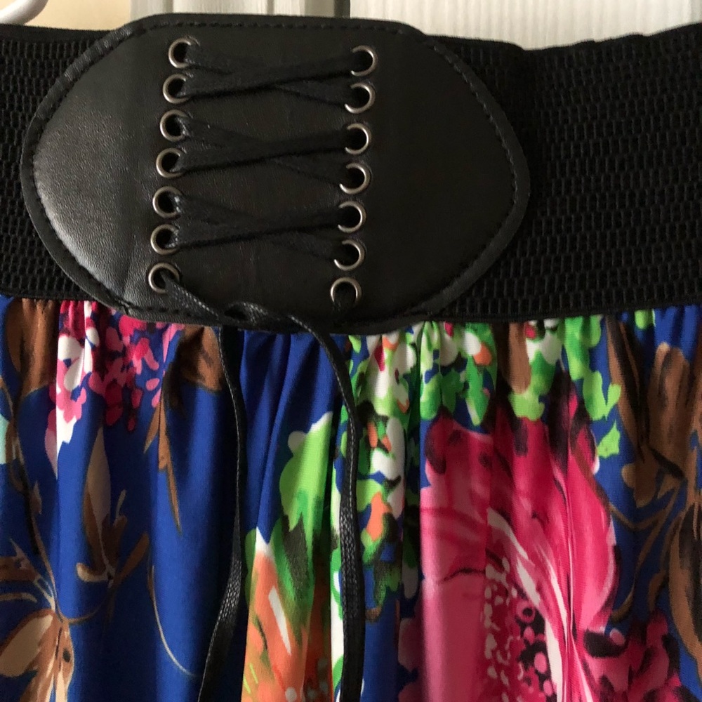 Floral skirt with black band at waist with front tie.119