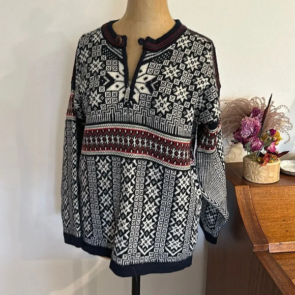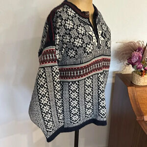 Skjaeveland of Norway wool sweater sz M navy red green white Nordic holiday