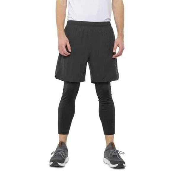Skora Men’s Woven Stretch 7” Running Shorts with Tights Pants Black Small