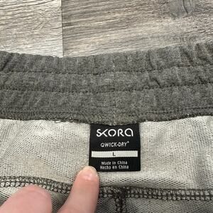 Skora Qwick Dry Gray Mens Large Tapered Jogger Active Sweatpants Athleisure Gym elastic waistband graphic side pockets polyester rayon spandex lightweight sporty active athleisure