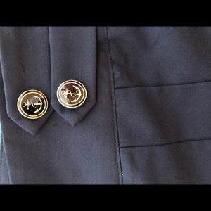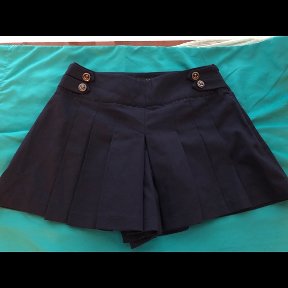 This is a navy blue skort. It have anchors on the buttons. It has never been worn.