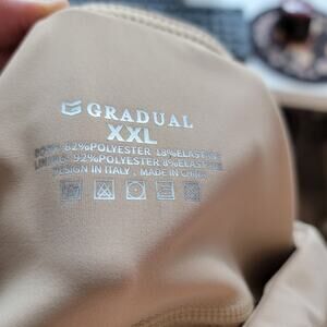 G Gradual women's athletic skort in a versatile tan color, size XXL. Designed in Italy, this high-performance skort features a pull-on waistband, two zippered side pockets, two back flap pockets, and a clever hidden pocket at the front hem. Built-in lightweight shorts provide comfort and coverage for all-day wear. Ideal for travel, hiking, golf, walking, or casual outdoor adventures.