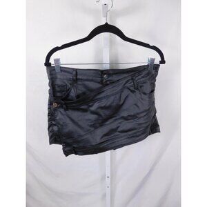 Skort Womens XL Black Faux Leather Coated Moto Biker Asymmetrical Wrap Stretch