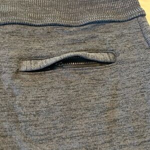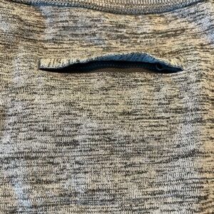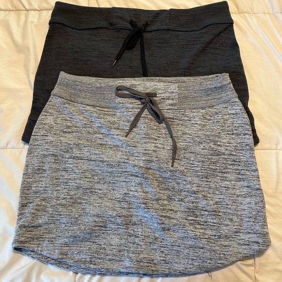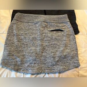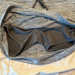 Bundle of two, soft heathered gray material. Built in shorts. Some loose threads. Back zipper pocket.